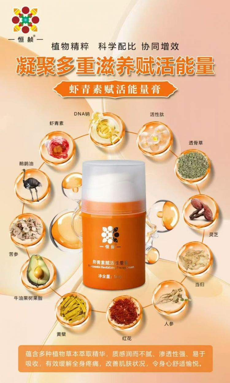 产品特点:虾青素赋活能量膏的功效和作用主要基于虾青素的特性及产品设计,以下是一些常见的功效和作用: