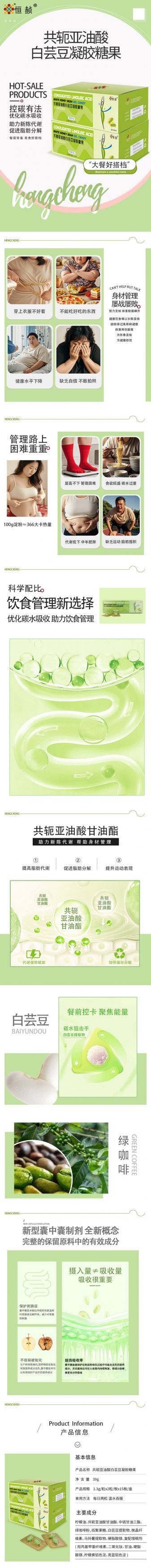 恒赪共轭亚油酸白芸豆凝胶糖果